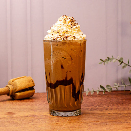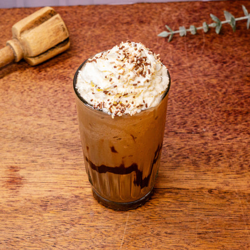 Mezcla especial de café(receta de la casa) licuada con hielos, crema de avellana, endulzante de su preferencia y leche.