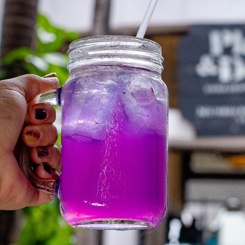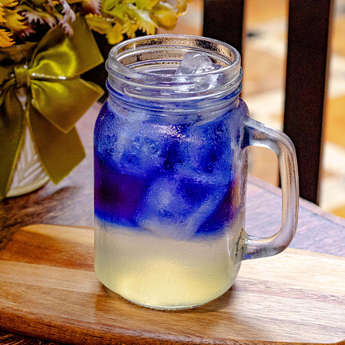 Bebida refrescante a base de jugo de limón. Infusionada con blue butterfly y mezclado con un toque de agua mineralizada